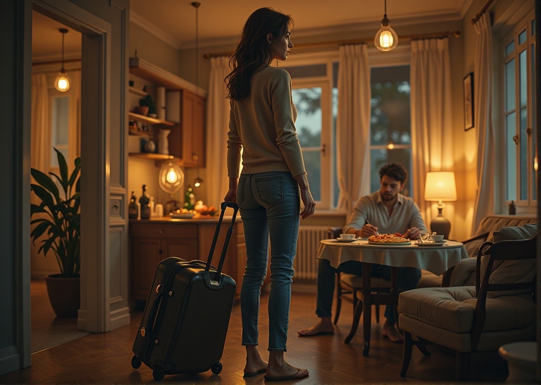 Через час в прихожей стоял её чемодан. Куртка была застёгнута, шарф накинут. Новый аромат держался на коже, как обещание. Она обулась, взяла ручку чемодана.