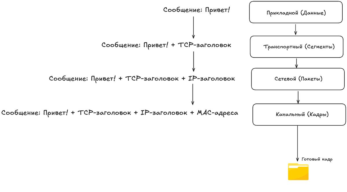 Давайте проследим, как ваше сообщение в мессенджере проходит через все уровни.