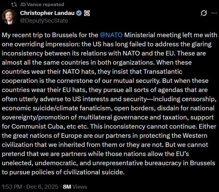 US NEARS EU SPLIT as Vance warns NO LONGER 'PARTNERS