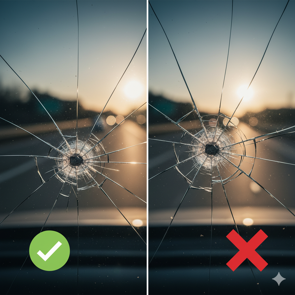 Лобовое стекло — это «триплекс». Два слоя стекла, а между ними пленка. Если камень пробил внешний слой и повредил пленку или, что хуже, внутренний слой стекла (прощупывается пальцем из салона) — ремонт невозможен. Конструктивная прочность потеряна.
