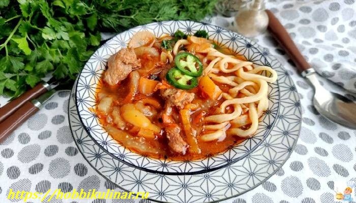 Лагман из говядины с домашней лапшой