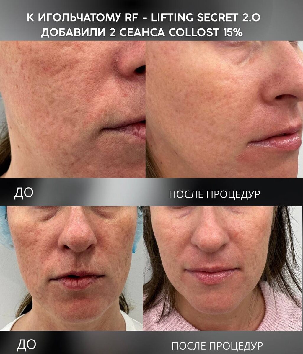 На данных фотографиях можно увидеть результаты после процедуры, где проведены еще 2 процедуры препаратом Collost - кожа становится более
