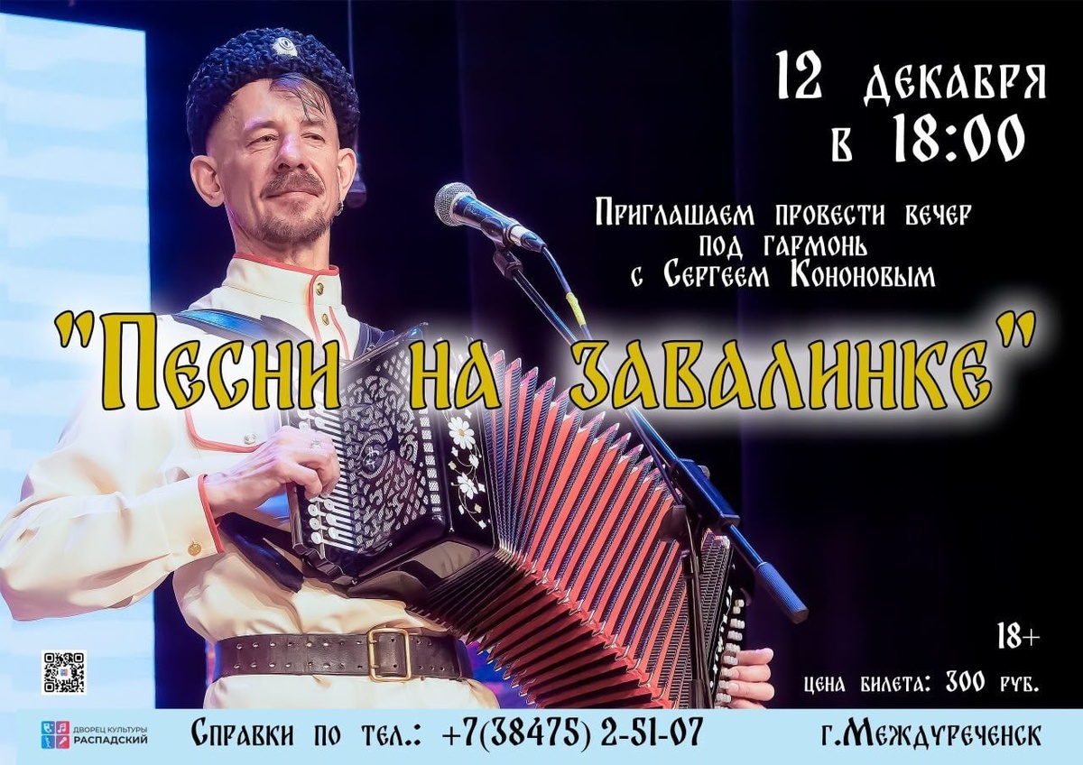 Мы собрали ближайшие мепрориятия в Междуреченске! Афиша ДК «РАСПАДСКИЙ» 🎭 СПЕКТАКЛИ «ЧУЧЕЛО» 09 декабря в 19:00 Сильная история, которая бьёт прямо в сердце. Повтор по многочисленным просьбам! 🎬 КИНО ВО ДВОРЦЕ «КАРУЗА» 13 декабря в 12:00 Трогательная история о мальчике и его собаке в блокадном Ленинграде. «КАПИТАН КРЮК» 14 декабря в 12:00 Семейное драмеди с Романом Курцыным. Билеты на сайте dkraspad.ru и в кассе. Доступна Пушкинская карта. 🎵 КОНЦЕРТЫ И ВСТРЕЧИ «ПЕСНИ НА ЗАВАЛИНКЕ» 12 декабря в 18:00 Казачьи песни под гармонь. Душевный вечер в уютном кругу. ВЕЧЕРА ОТДЫХА «ПРАЗДНИЧНАЯ ПЕРЕЗАГРУЗКА» 06, 27, 30 декабря в 19:00 Отмечаем конец года вместе! 📍 КАК ПОПАСТЬ? 📍 ДК «Распадский» 📞 8 (38475) 2-72-04 — запись и вопросы 🎫 Билеты: в кассе ДК или на сайте dkraspad.ru ❗️ Работает Пушкинская карта Рекламодатель МБУК ДК «Распадский» Токен 2Vtzqxjyhsf