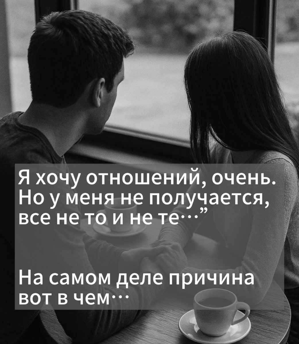 Вы активно ищете отношения. Вы ставите цели, ходите на свидания, общаетесь в приложениях. Но сценарий повторяется: вы разочаровываетесь, чувствуете, что «все не те», и снова остаётесь наедине с нарастающей тревогой и мыслью: «Мне это прям очень надо!»
