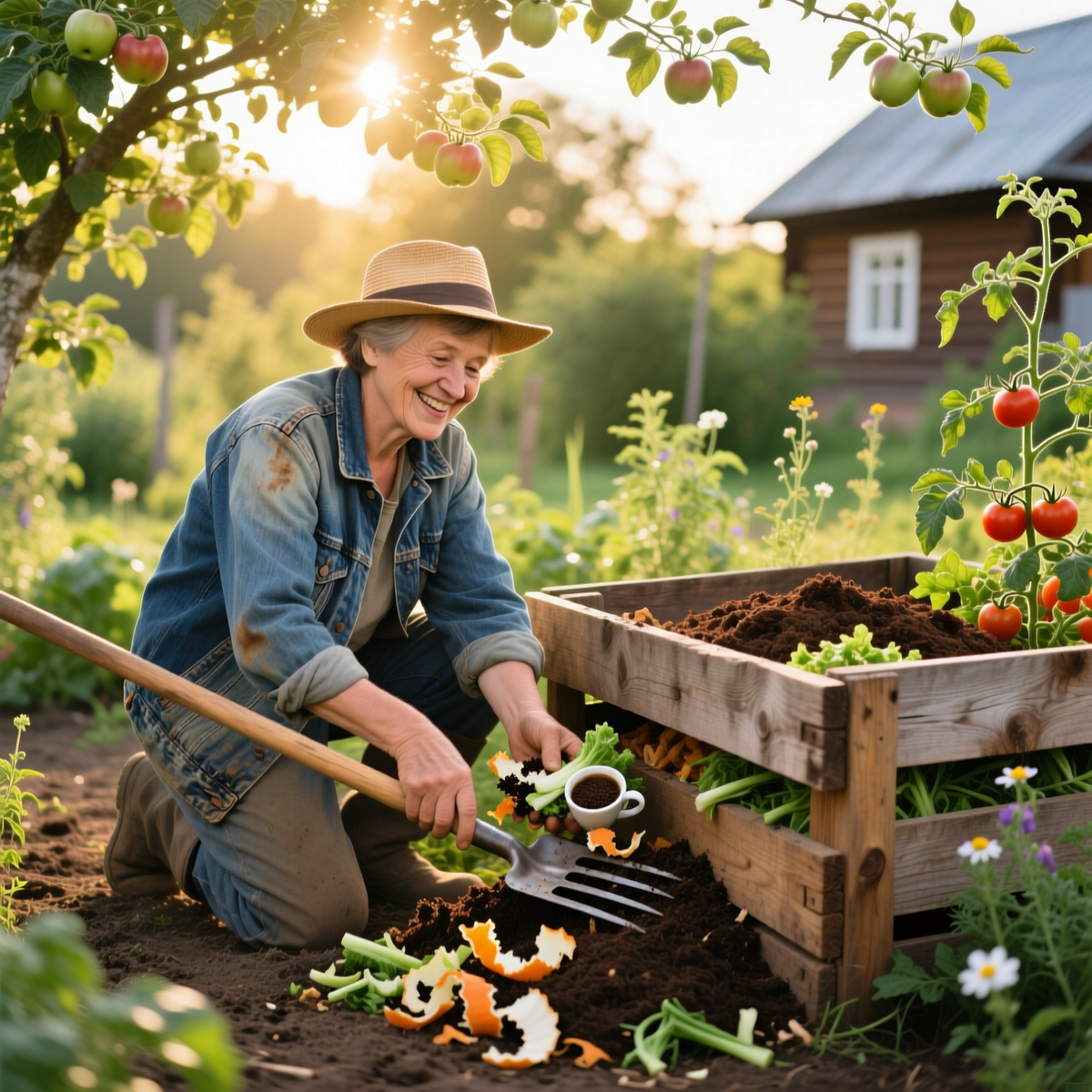 — Добавляю свежую гущу в компостную кучу.