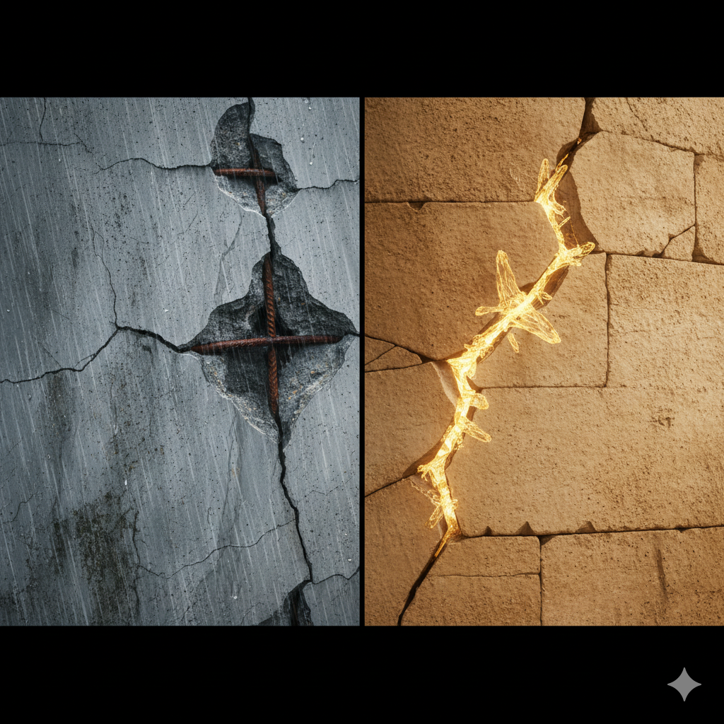 Вы когда-нибудь задумывались, почему мы планируем колонии на Марсе, но не можем сделать асфальт, который переживет одну зиму? Это инженерный парадокс. Римский Пантеон, построенный в 126 году н.э., стоит до сих пор. У него самый большой неармированный бетонный купол в мире. И он не падает. Наши панельки рассчитаны на 50 лет. Я решил выяснить, где мы свернули не туда. Я не стал листать пыльные трактаты, а поступил как технарь: загрузил химический состав римского бетона (opus caementicium) и современного портландцемента в нейросеть, моделирующую старение материалов. Задача для ИИ была простой: «Проведи краш-тест обоих образцов на дистанции в 500 лет. Воздействие: дождь, морская вода, перепады температур». Химия, которую мы потеряли То, что показала симуляция, современные строители назвали бы магией. Но ИИ назвал это «термодинамическим программированием». Когда трескается современный бетон, в трещину попадает влага. Арматура ржавеет, лед разрывает камень. Конец истории.