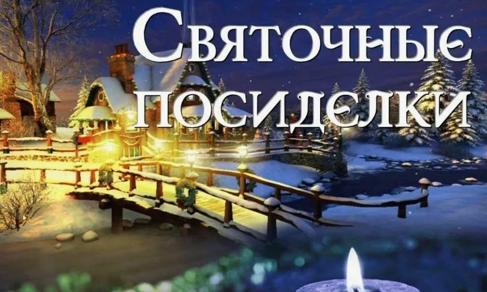Ведущий 1: Наш вечер носит название "Рождественские Святки". Посиделки, как вы знаете, — это когда собирались девушки и парни в просторной избе, располагались на лавках вдоль стен, общались и делились новостями. Как и сейчас!