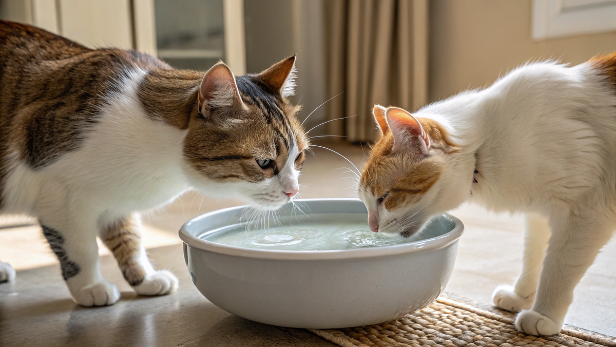 Если ваши кошки пьют достаточно из одной миски — не ставьте больше. Если пьют мало — добавьте миски в тех местах, где кошки проводят время. Это не про конкуренцию, это про удобство.