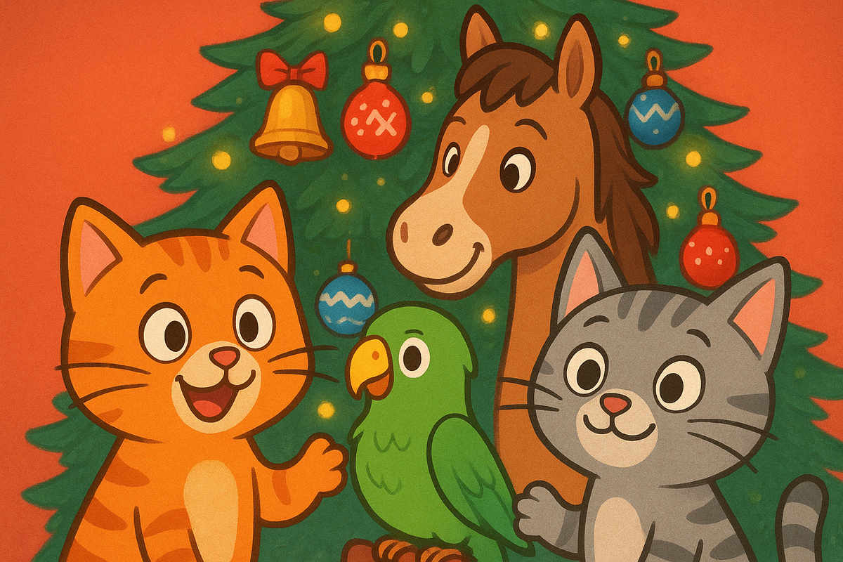 Новогодний рисунок. Коты и лошадь.
