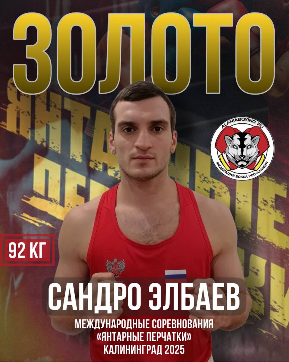 Сандро Элбаев стал победителем международных соревнований по боксу «Янтарные перчатки» в весовой категории до 92 кг в Калининграде. Тренируется спортсмен под руководством Батраза Баскаева, боксерский клуб «Барс» (Владикавказ). (@ossetiaboxing)