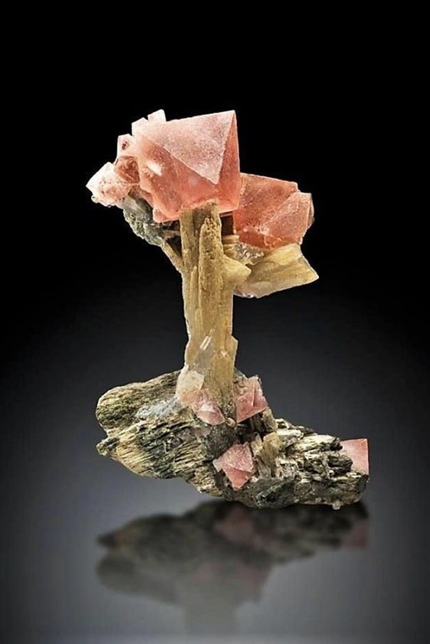 Сокровища земли. Натуральные кристаллы: флюорит с кварцем и ильваитом.