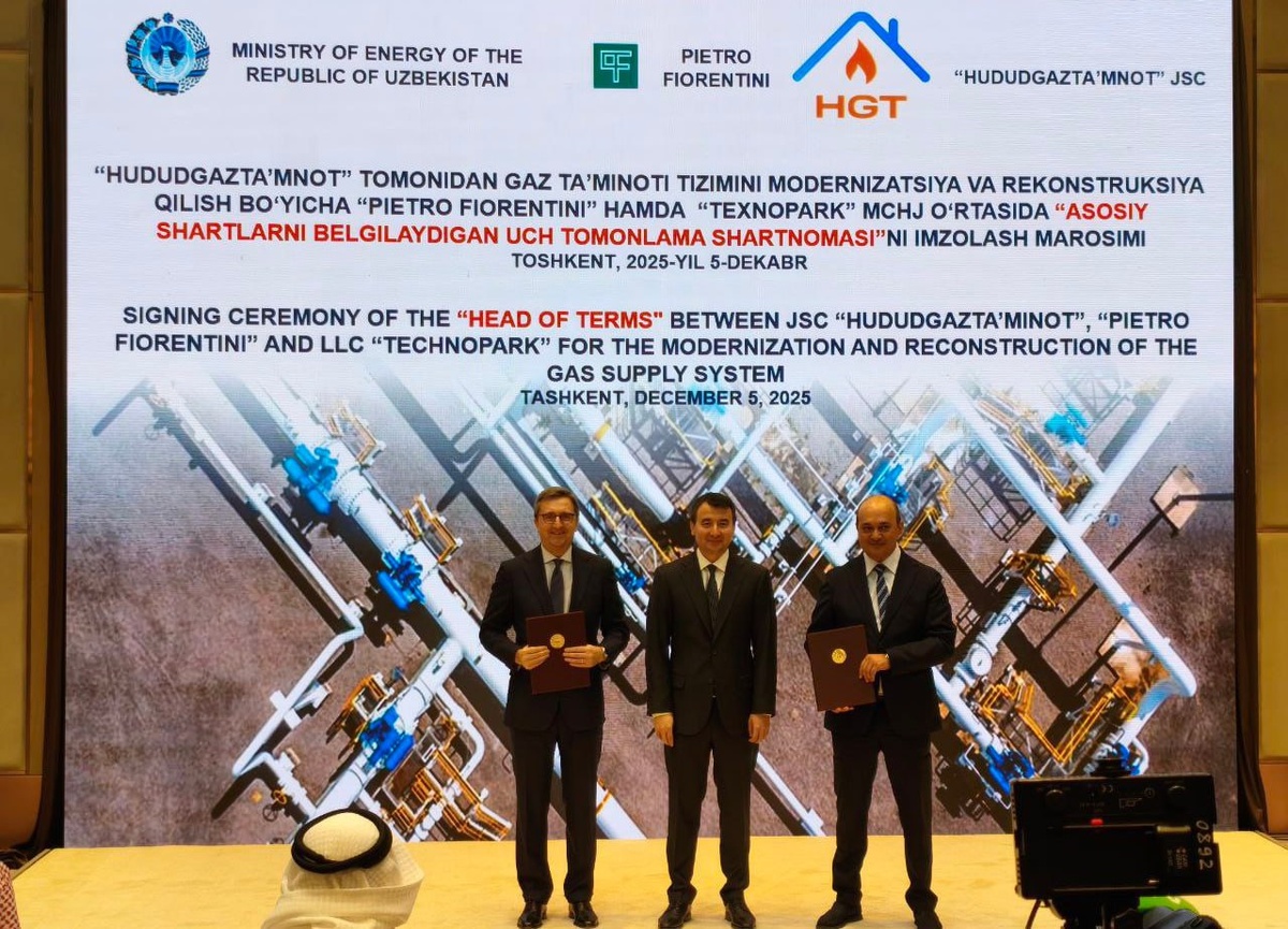 Vaib.uz (Узбекистан. 7 декабря). На днях в Ташкенте был подписан важный документ, который определит будущее системы подачи газа в столице. Речь идет о меморандуме между «Hududgaztaminot», «Texnopark» и известной итальянской компанией Pietro Fiorentini. Этот документ касается реализации крупного проекта по внедрению двухступенчатой системы подачи газа на основе модернизации городских газораспределительных пунктов. Согласно подписанному меморандуму, стороны определили принципы стратегического сотрудничества и договорились ускорить необходимые меры для своевременного и эффективного внедрения новых технологий. Главная цель проекта — снизить технологические потери и обеспечить стабильную подачу природного газа для жителей Ташкента. В рамках сотрудничества будет проводиться обновление инфраструктуры газоснабжения столицы с использованием передовых решений Pietro Fiorentini, которые уже зарекомендовали себя в Европе и других странах мира. Внедрение новых технологий должно повысить надежность