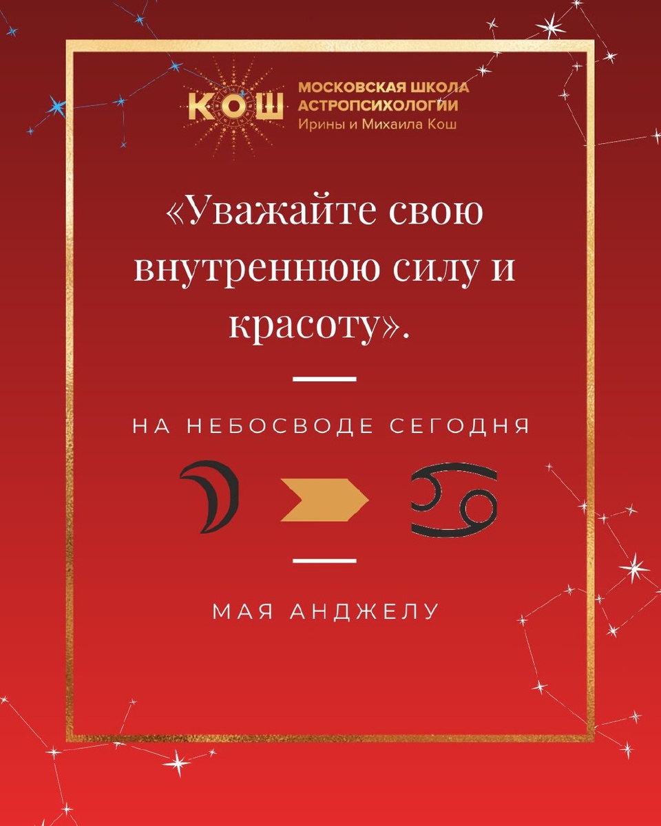 ✨Воскресенье✨ — Луна входит в знак Рака. Это время для уюта и эмоционального комфорта. Как говорила Мая Анджелу: «Уважайте свою внутреннюю силу и красоту». Проведите время с семьей, занимайтесь тем, что приносит радость, и не забывайте о заботе о себе.