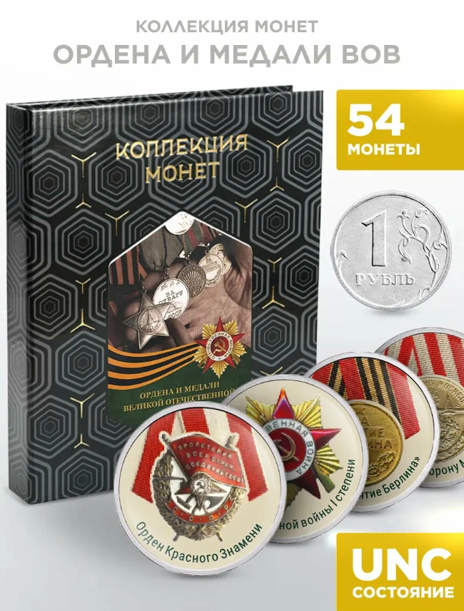 приобрести приобрести Эта новинка словно светлый луч памяти среди истории нашей Родины, бережно собранная в роскошный альбом монет «Ордена и медали ВОВ» из цикла «Великая Отечественная война». Каждая рублёвая монета здесь становится звеном великой цепи героизма, каждый экземпляр посвящён героям той далёкой войны, кому мы обязаны свободой сегодня. приобрести Это не просто деньги, а воплощение духа, бессмертие доблести, запечатленное в металле. Здесь вы найдёте знаковые ордена и медали, как блестящие страницы летописи победы: Орден Красного знамени, сияние храбрости, Орден Ленина, венец несгибаемой воли, Орден Красной звезды, вечный символ мужества, Медаль «За оборону Сталинграда», рассказывающая историю непокорённого города героев, Медаль «За отвагу», вечно живое свидетельство подвигов простых солдат. приобрести Коллекционный альбом оформлен изящно и функционально: каждая монета находится в своем индивидуальном блистере, защищена от повреждений и пыли, словно драгоценный камень