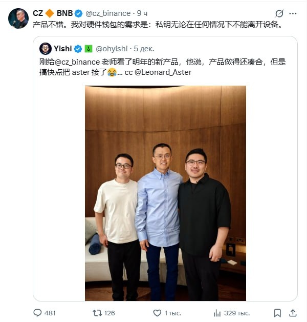 🔸Основатель Binance Чанпен Чжао заявил, что его основное требование к аппаратным кошелькам заключается в том, что "ключ ни при каких обстоятельствах не покидал устройство". Ранее YZi Labs объявила о своей инвестиции в аппаратный кошелек с открытым исходным кодом OneKey.