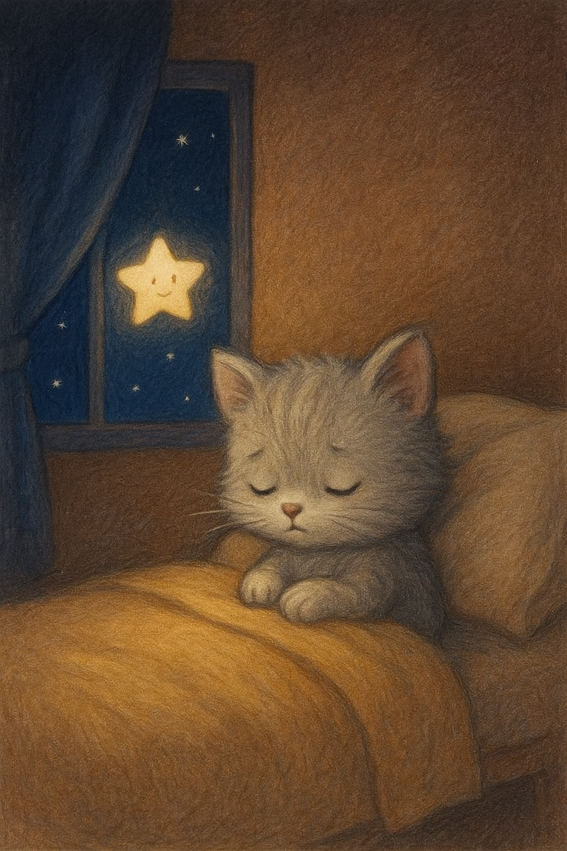 Теперь котёнок Луфик умел засыпать сам. Он помнил: чтобы сон пришёл, нужно лишь немного спокойствия, тишины и нежных мыслей. Но однажды ночью ему пришлось использовать эти знания по-настоящему. Было позднее вечернее время. Луфик уже улёгся в кроватку, накрылся своим пуховым одеяльцем и почти задремал, как вдруг услышал тихий звук за окном. Не стук, не шелест — скорее печальный всхлип. Котёнок приподнял голову.
