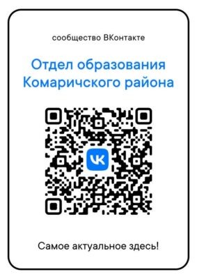 Информацию о деятельности отдела образования администрации Комаричского муниципального района вы можете узнать на официальной странице учреждения в соцсетях. Для этого нужно перейти по QR-коду.