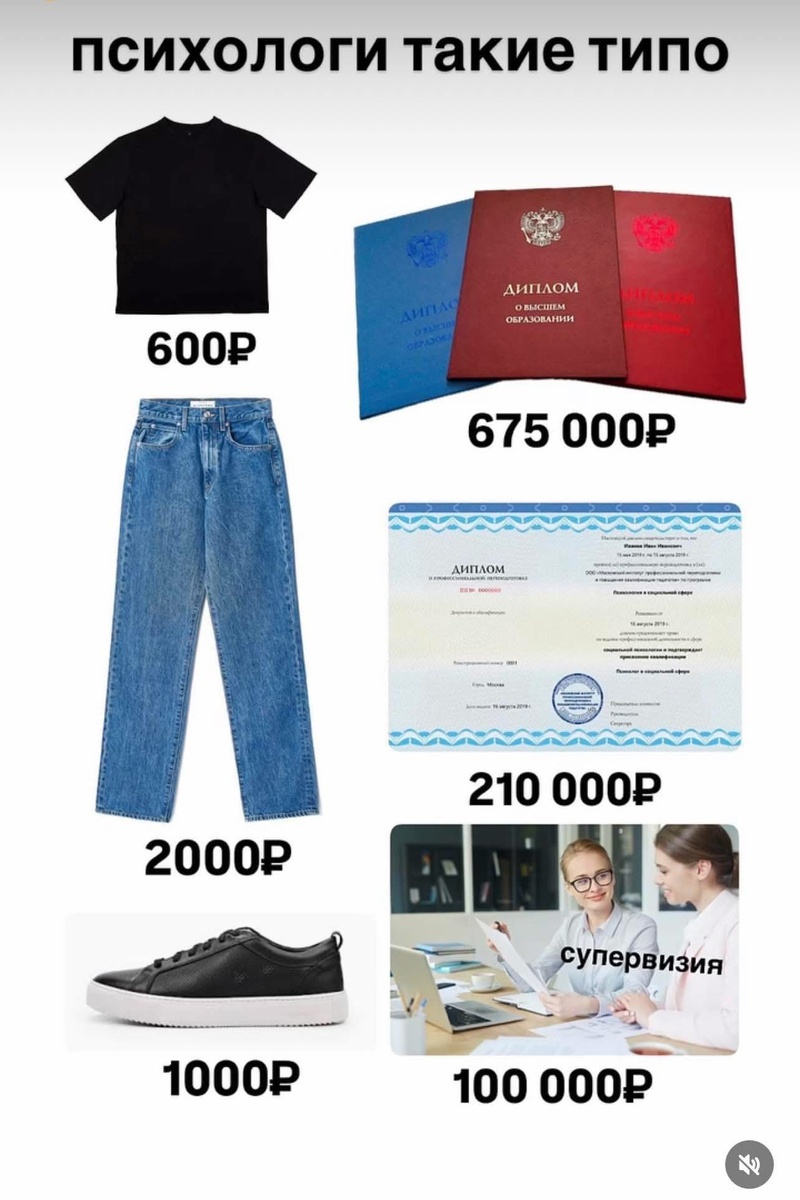 Сначала хотела запостить вам эту картинку для смеха, но сам собой родился пост про перфекционизм. В целом да, образование психолога стоит приличных денег, плюс тебе хочется купить всякие дополнительные курсы, углубленное изучение тем, супервизии, литературу и тд. И на условные кеды действительно остается такая же условная сумма, потому что начинающие психологи не могут поставить стоимость своих услуг такой, чтобы хотя бы просто прожить на этот доход. Клиентов мало, опыта мало, сарафанное радио еще не заработало. Поэтому большинство психологов имеют альтернативный доход, из которого, собственно и оплачивают свое образование. Но хватит о психологах, давайте поговорим про людей других профессий, которые являются «счастливыми обладателями» такой черты как перфекционизм. Перфекционизм - это стремление сделать все не просто хорошо, а идеально или лучше всех. В случае с «идеально» идеал, как всегда, недостижим, а значит, нет смысла делать (здравствуй, бесконечная прокрастинация) - таков