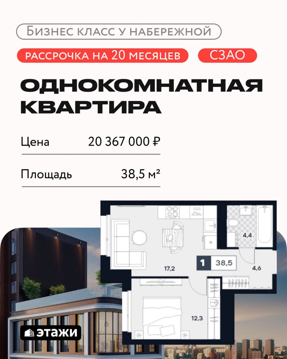 ▶️Рассрочка О ЖК: 🔴район Южное Тушино, СЗАО 🔴Срок сдачи — 1 кв. 2028 года 🔴Камерный проект бизнес-класса — 2 корпуса, 21–29 этажей 🔴Благоустроенная набережная и ландшафтный парк с зонами отдыха 🔴Лаунж-зона на крыше с видовой террасой 🔴Двухуровневый подземный паркинг с кладовыми помещениями 🔴В пешей доступности — школы, детсады, поликлиники Условия: 🔴Применима скидка на базовую цену до 7% 🔴Беспроцентная, сроком до августа 2027 года 🔴Первоначальный взнос от 30% 🔴Фиксированные платежи: студии и 1 комн. — 100 000 ₽; 2-4 комн. — 150 000 ₽ Расчет: 🔴Базовая стоимость с применением скидки 7%: 20 367 000 ₽ 🔴ПВ 50%: 10 183 000₽ 🔴Платежи: 100 000 до 08.2027, возможен переход на ипотеку #СЗАО #ЮТУ #ТОЧНО