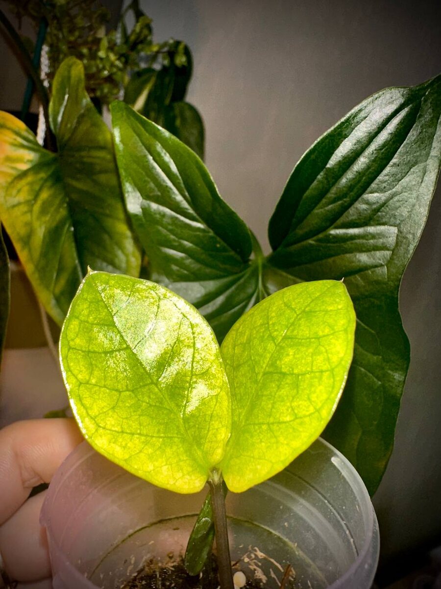 Есть у меня такой замик 🌱естественно выращен из сегмента) брала его как биг раунд и вот первый долгожданный рахис, но имеет характерную сеточку на листе🤔, вот теперь жду))) вроде давно уже такой) окрасится и это простой раунд, или все таки нет?)🤓 #интерьер #растения #комнатныецветы #замиокулькас #биграунд