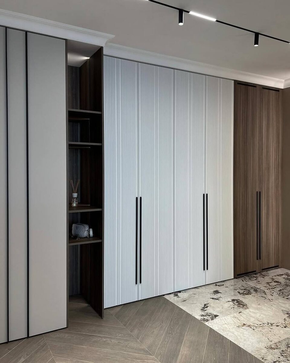 Продуманная организация пространства в каждой детали Реализовали стильный шкаф в прихожую, где каждая зона создана для вашего комфорта. Материалы: 🔵 Фасады: матовый МДФ Perfect Sense + крашеный МДФ 🔵 Корпус: ЛДСП Egger 🔵 Фурнитура: Blum Особенности: • Открытые полки с мягкой подсветкой • Ниша для стиральной и сушильной машины • Вместительные системы хранения Размеры: 📐 Высота: 2780 мм 📐 Ширина: 4410 мм 📐 Глубина: 605 мм Идеальный порядок начинается с первой минуты возвращения домой! 💬 Хотите такую же прихожую? Напишите нам: wa.me/+79955009461
