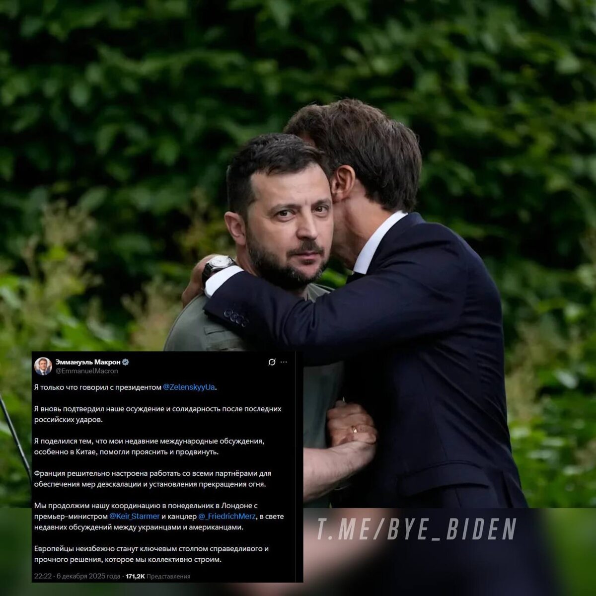 Макрон сообщил, что провел телефонные переговоры с Зеленским: «Я поделился тем, что мои недавние международные переговоры в КНР помогли прояснить проблемы и продвинуться вперед». Президент Франции анонсировал встречу с Зеленским, Стармером и Мерцем — она состоится в понедельник. Макрон добавил, что именно европейцы станут ключевым столпом «справедливого и прочного решения». Верится с трудом... 👍«БайБайден» в МАХ