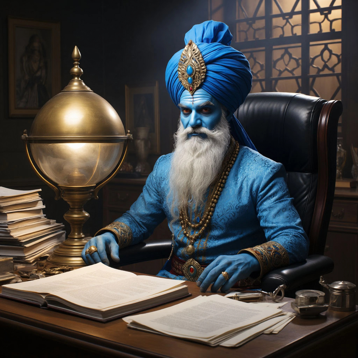 Джинн Азарис, некогда могущественный дух, живший в изящной золотой лампе, теперь втискивался в неудобное офисное кресло за столом, заваленным пыльными папками. Его некогда сияющая синяя кожа приобрела какой-то бледно-голубой оттенок, а из-под чалмы то и дело выбивались непослушные пряди. Он мечтал о временах, когда желания были простыми – «хочу сокровищ», «хочу любви», «хочу власти». Теперь же клиенты приходили с такими запросами, что голова шла кругом.