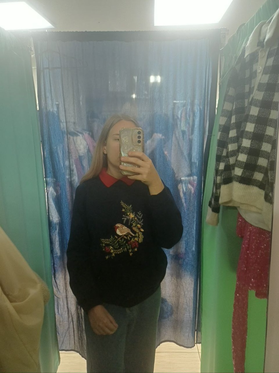 Продолжаю создавать для вас подборки одежды из секонд хенда. Осень уже закончилась и началась зима , а это значит , что футболки , топы и легкие свитерки пора убирать и доставать теплые , мягкие толстовки , свитшоты и лонгсливы. Сегодня в подборке я как раз собрала несколько вариантов одежды , которая подойдет на холодное время года. Цена дня- 3 400 рублей. Синяя кофта-поло с красным воротником и большой , красивой вышивкой на груди. Такая кофта ассоциируется у меня с американскими рождественскими фильмами, где на праздник собирается вся семья. Свитер от бренда Ramblers, который предлагает одежду в стиле кантри, изготовленную в Великобритании. Размер- М, стоимость-1 305 рублей. Новогодний ярко-красный свитер. На свитере от Esmara (немецкая торговая марка женской одежды и аксессуаров) изображена елка, снизу надпись«Merry Christmas» переводится как «Счастливого Рождества». А звездочка на елке светиться.Размер-42/44. Мне кажется в таком красивом свитерке можно даже встречать Новый го