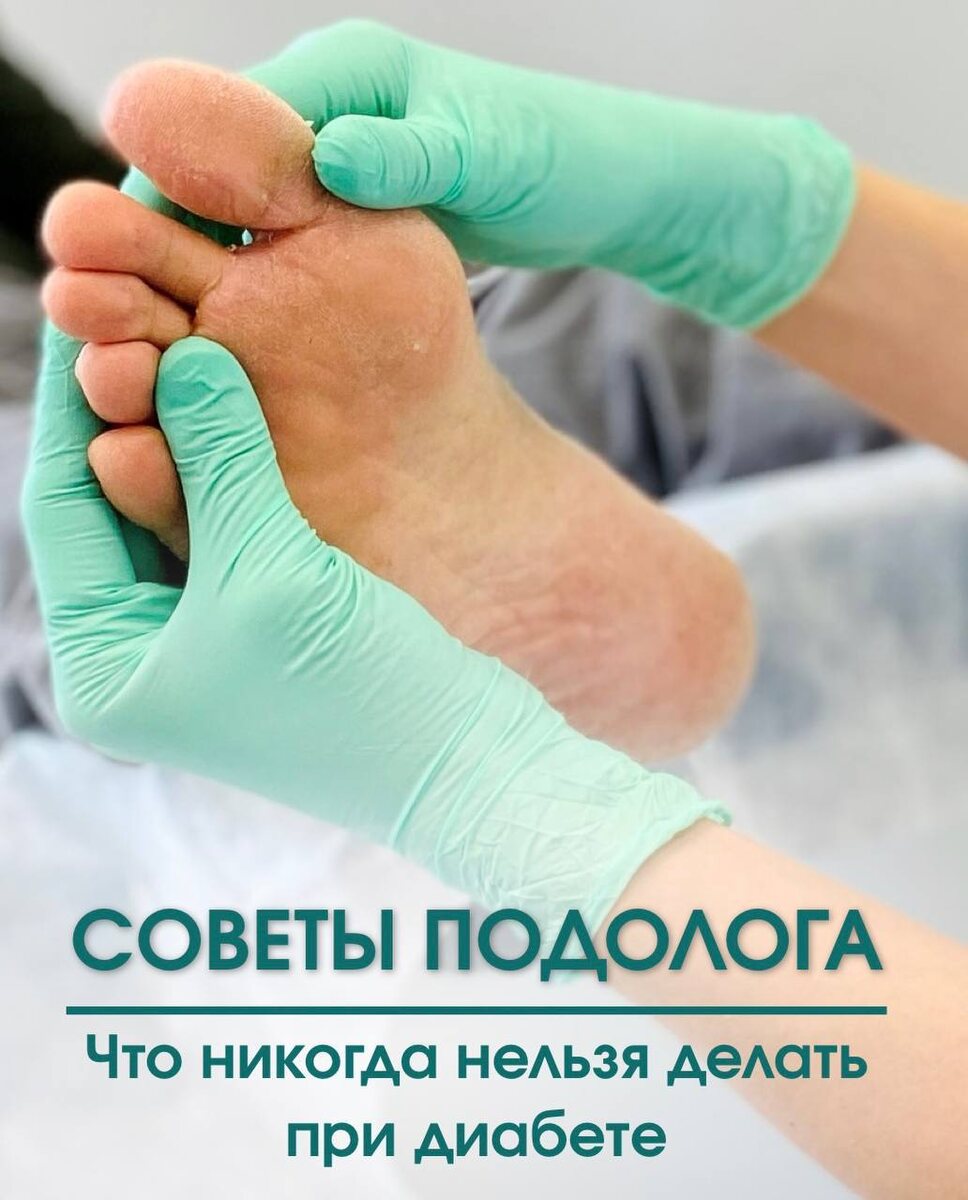 Что никогда нельзя делать при диабете! Диабет — сначала безопасность, потом уход При диабете кожа и сосуды реагируют иначе: чувствительность снижена, заживление замедлено, риск инфекции выше. И есть вещи, которые действительно могут привести к язвам и ампутации, даже если сейчас «ничего не болит». Советы подолога: 1. Не распаривайте стопы Горячие ванночки вызывают ожоги и размягчают кожу, что приводит к трещинам и инфицированию. Водные процедуры — только тёплая вода и коротко. 2. Не срезайте трещины, мозоли и “лишнюю” кожу Даже маленький порез может превратиться в незаживающую рану. Обработка проводится только у подолога, в щадящей технике. 3. Не ходите босиком — даже дома Сниженная чувствительность = можно не заметить порез, укол, ожог. Обувь и носки — всегда. 4. Не используйте народные методы Сода, уксус, чистотел, компрессы «из интернета» вызывают химические ожоги и усугубляют ситуацию. Диабет — не тот случай для экспериментов. 5. Осматривайте стопы ежедневно Проверяйте пятк