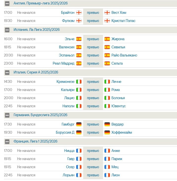 Матчи на сегодня