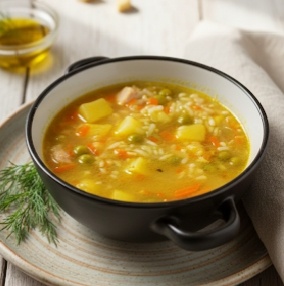 Этот рецепт идеален, когда хочется горячего, но нет времени на долгую готовку! Всего 30 минут — и ароматный, сытный суп готов! ✨ 🛒 Ингредиенты (на 4-литровую кастрюлю) * 1 большая луковица 🧅 * 1 средняя морковь 🥕 * Филе курицы (или индейки) — примерно 300-400 грамм 🍗 * 150 грамм риса (длиннозёрный, лучше пропаренный) 🍚 * 4-5 средних картофелин 🥔 * 1 чайная ложка сахара (для карамелизации лука) 🍯 * Растительное масло для обжарки * Кипяток или готовый бульон (около 3-3,5 литров) * 1 банка (около 400 грамм) консервированного зеленого горошка (вместе с жидкостью) 🥫 * Соль, перец, приправы по вкусу 🧂🌿 👩🍳 Пошаговый Рецепт * Разогреваем кастрюлю с растительным маслом. Режем луковицу (я предпочитаю четверть кольцами) и добавляем в кастрюлю. Добавляем туда же чайную ложку сахара. Обжариваем до красивого золотистого, карамельного цвета. 🌟 * Натираем морковь на крупной терке. Добавляем морковь к луку и обжариваем пару минут, чтобы она стала мягкой. * Режем филе небольш