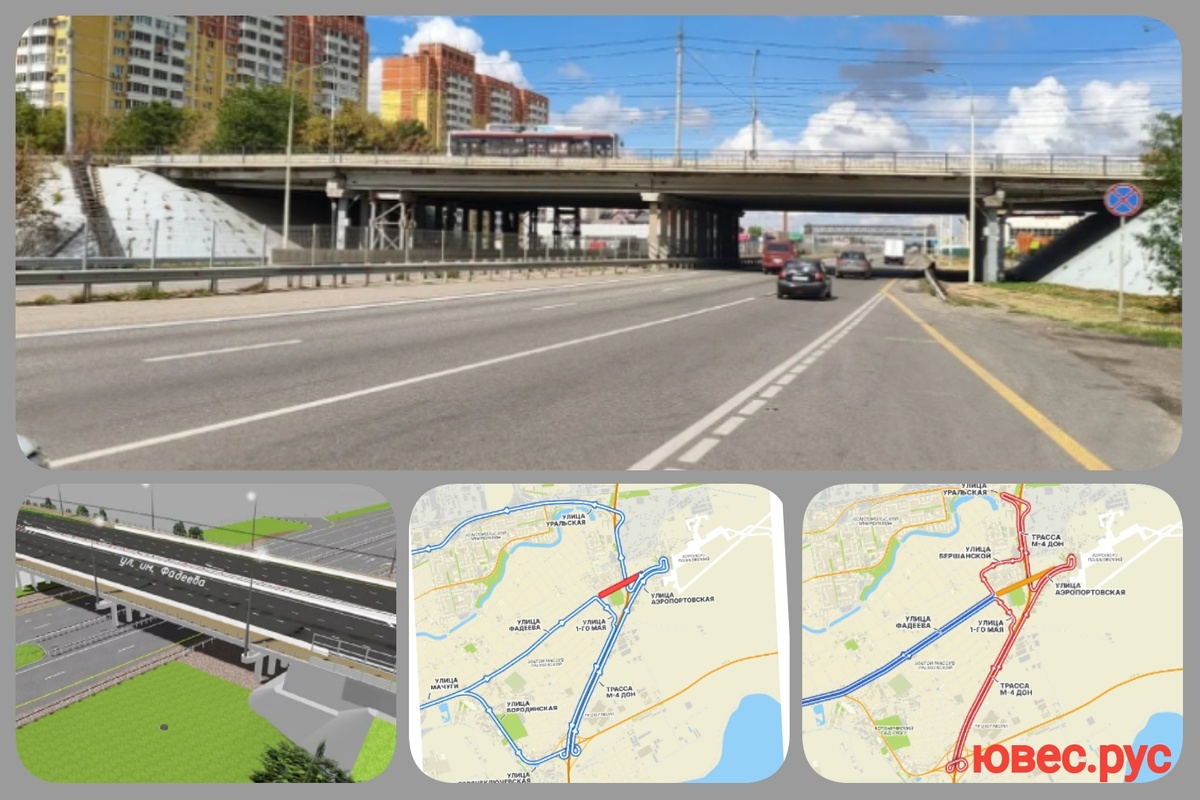 Мост по улице Фадеева над трассой М4 Дон перед Аэропортом Краснодар закрыт на реконструкцию С 06 декабря 2025 года на Юге России в Краснодарском крае в городе Краснодар по улице Фадеева над трассой М4 Дон закрыт мост возле Аэропорта Краснодар на реконструкцию. Движения в аэропорт будет осуществляться со стороны ОзМолл. Для этого с трассы М4 Дон необходимо повернуть на улицу Аэропортовскую к терминалу аэропорта. Выехать можно также через улицу Аэропортовскую на трассу М4 Дон до улице Уральской. Троллейбус продолжит движение по улице Фадеева через улицу 1 Мая по трассе М4 Дон до ОзМолла далее по трассе М4 Дон затем по улице Аэропортовскую до терминала Аэропорта. От терминала Аэропорта по улице Аэропортовской по трассе М4 Дон до улице Уральской снова по трассе М4 Дон через улицу имени Евдокии Бершанской и улице 1 Мая до улице имени Фадеева далее по маршруту до железнодорожного вокзала Краснодар 1. Для пешеходов будут доступны два маршрута: через надземные переходы над трассой М4 Дон н