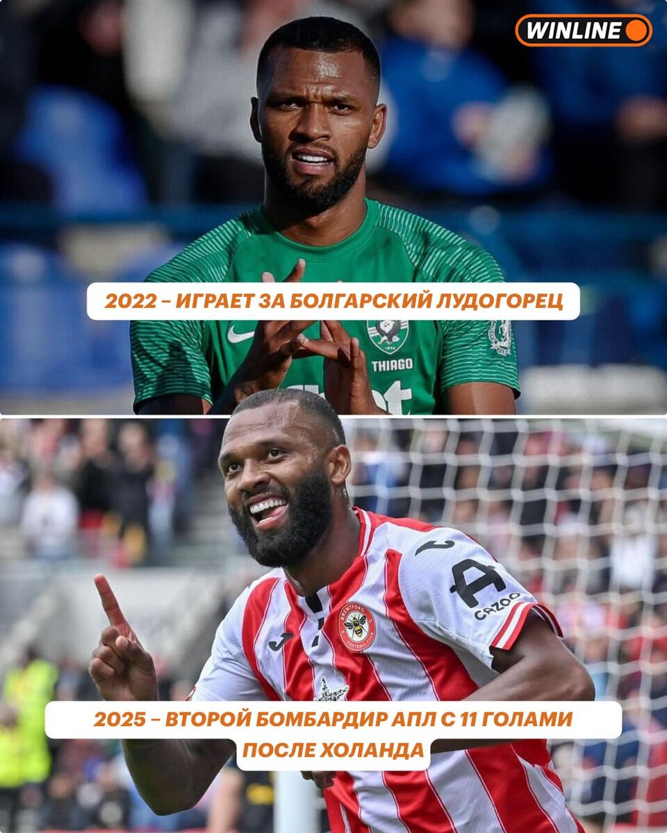 Удивительная история Игора Тиаго 🏴 В 2022 году он перешел из Крузейро в болгарский Лудогорец. Чтобы адаптироваться в новой команде, он тренировался с дублем. За полтора года он дважды выиграл чемпионат и следующим летом уехал в Брентфорд. Сейчас Тиаго борется за звание лучшего бомабрдира АПЛ с самим Эрлингом Холандом!