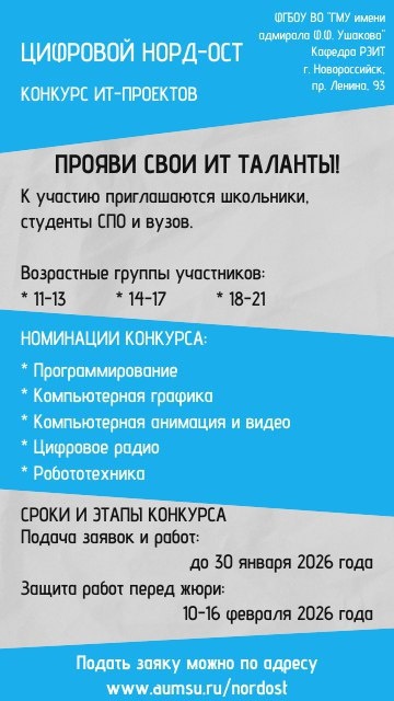 ВНИМАНИЕ❗АНОНС❗ ✅"Цифровой норд-ост 2026" Вы ждали этого целый год! Дождались, "Цифровой норд-ост 2026" объявляем открытым! Скорее придумывайте проекты и шлите их к нам на конкурс. Внимательно (!!!) изучите положение на сайте и заполняйте форму заявки! Ждём с нетерпением😃 #ушаковкарф