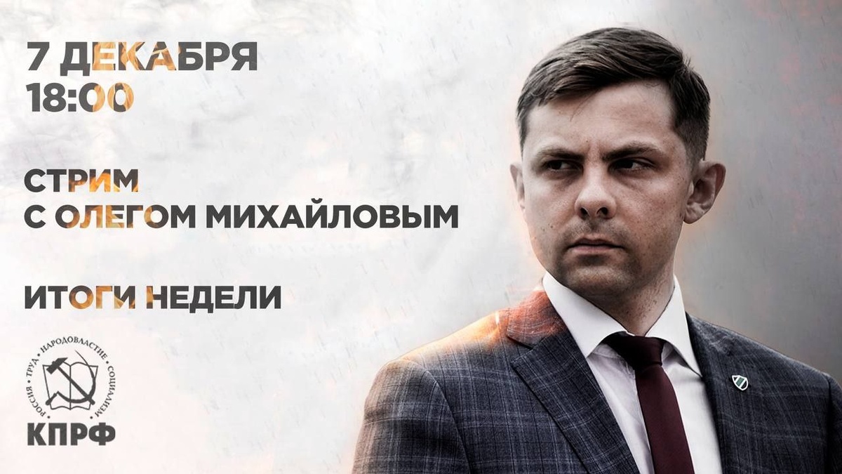 ❗️Сегодня в 18 часов Олег Михайлов проведёт эфир со своей страницы "ВКонтакте", где обсудит вместе со зрителями итоги прошедшей недели