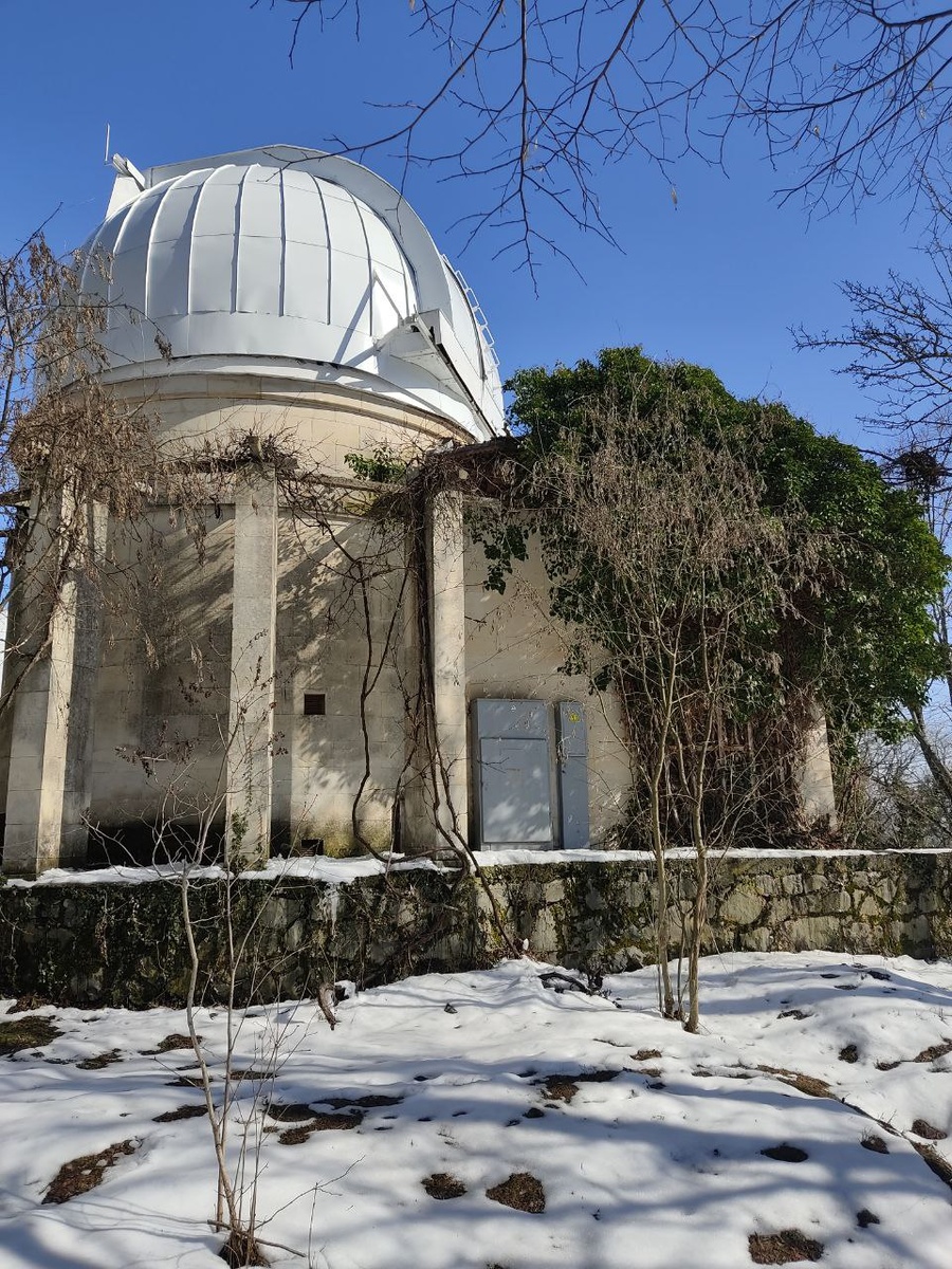 Крымская астрофизическая обсерватория зимой Поселок Научный Одно из моих любимых мест в Крыму. Куда с удовольствием приезжаю и стремлюсь вернуться в следующий раз На мой взгляд, здесь очень атмосферно. Природа и наука, история и современность, труд людей соединились в одном месте Ещё одно из любимых мест в горах Крыма