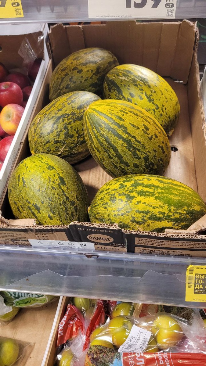 Вчера в супермаркете увидели с Марко такие непонятные "фрукты", не было подписано, что это. Марко сказал, похожи на кабанят. Я подумала, как точно Марко их охарактеризовал. 😁 Дома я посмотрела в интернете, что это, оказывается, это дыни и называются они «Пиель де сапо» (Piel de Sapo), что в переводе с испанского означает «Жабья кожа». Значит, кому-то испаноговорящему они показались похожими на жаб. 😄 Сказала об этом Марко, он говорит, ну да, и на жабу похожи зелёным цветом, а вообще по виду больше на кабанчиков. Вы пробовали такие дыни? Как вам на вкус? Стоит купить попробовать такого жаба-кабанчика?
