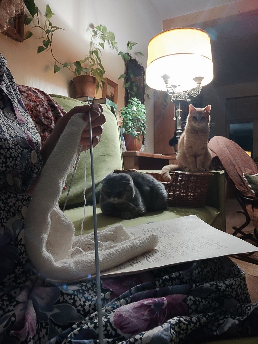 ~Добрый день, милые женщины ✨🎶 Выходные я провожу за вязанием своей белой блузы по описанию 40-х годов. ~Самое сложное позади. Готовы спинка и две полочки. Полочки идут с ажурной вставкой и эта вставка очень долго вывязывается. Плюс, конечно, я допускала ошибки и приходилось местами распускать и перевязывать, да еще и в самой схеме есть неточности. Но с горем пополам я осилила😊 узор. ~Остались рукава и воротничок. Надеюсь скоро покажу готовое изделие✨ #винтажныйстиль #ретро #образ #вязание