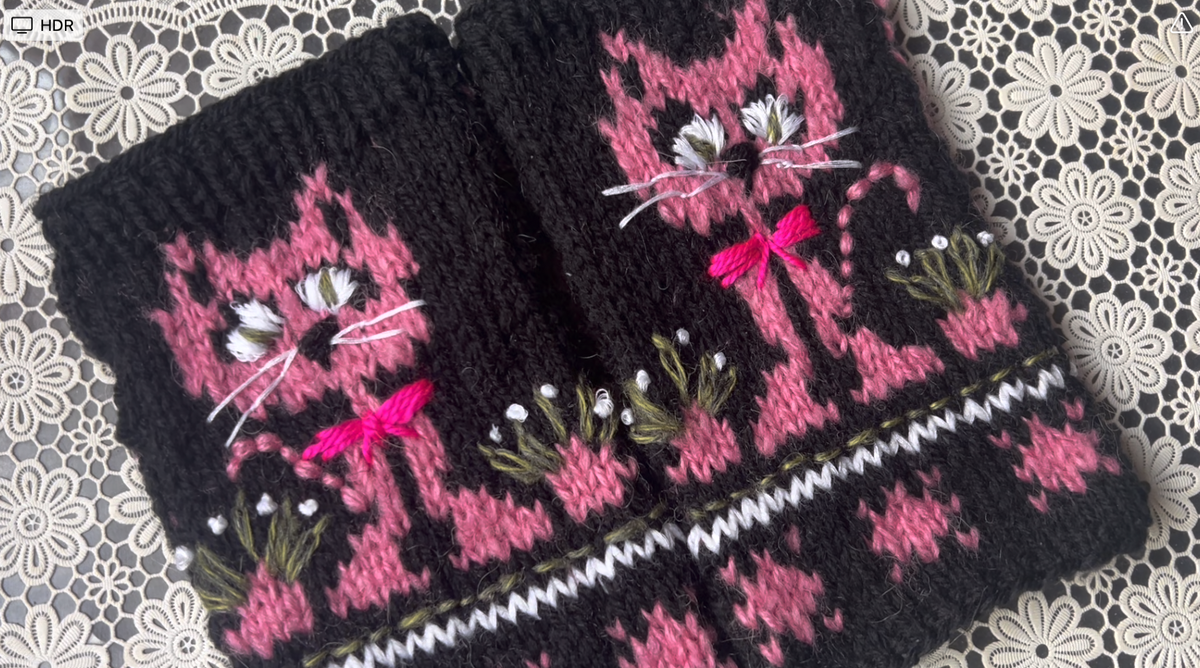 Всем привет, приветики! На показе у меня сегодня вот такие теплые митенки на заставке , как говорят французы : "перчатки без пальцев", но ИИ в упрощенном варианте без "шубок" для верхних пальчиков. Сначала я хотела назвать свою работу "Розовый котенок". Однако я всегда проверяю, если где-то бренд с таким названием. Оказалось есть. Так называется прелестная детская колыбельная песенка. Брать чужое не прилично, и свои митенки я назвала , как Вы уже увидели на заставке, "Розовый кот". Работа выполнена по моей придуманной схеме, которая в рабочем состоянии выглядит так. Такие веселые митенки могут пригодиться девочке - подростку. Они выглядят по-детски и на мой взгляд очень милы. На Телеграм я вышлю видео, но и здесь в ДЗЕН его тоже можно посмотреть. Оно коротенькое всего две с небольшим минуты. Рада была поделиться своей новой работой. Всем хорошего дня и настроения. Пока!