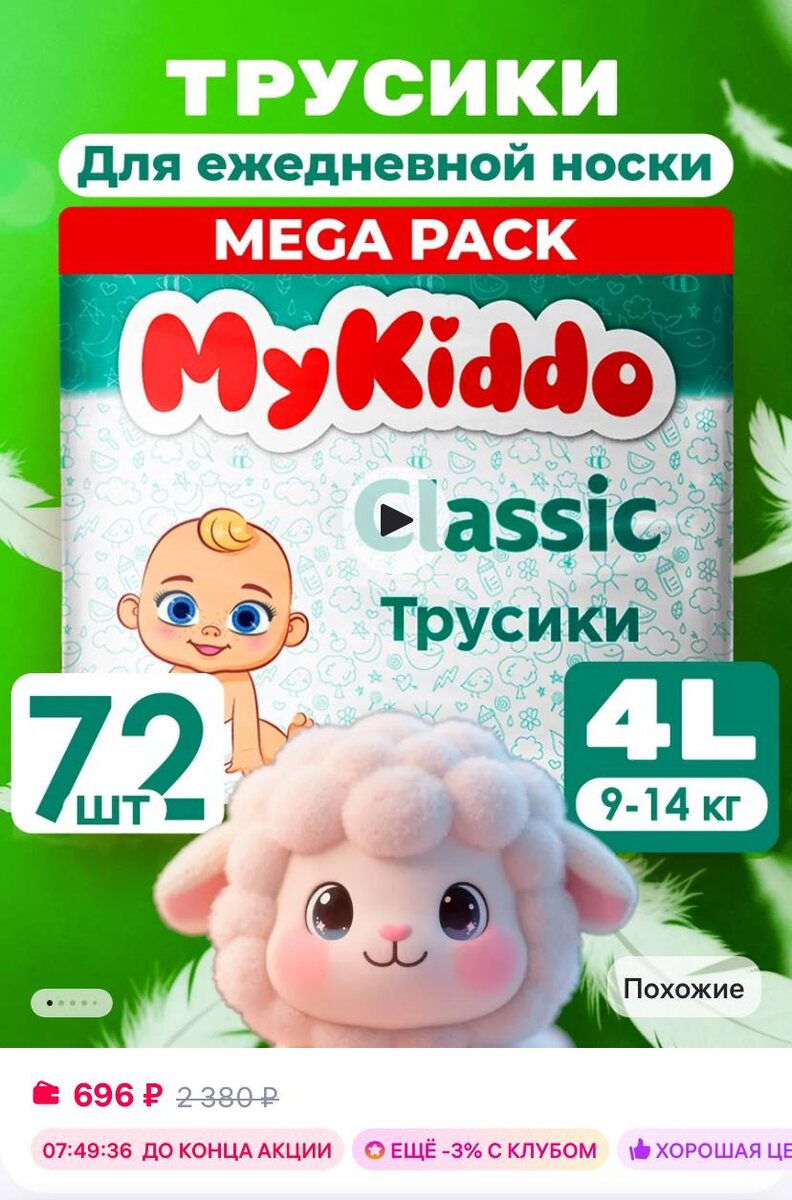 MyKiddo Подгузники трусики 4 Classic 9-14 кг 72 шт