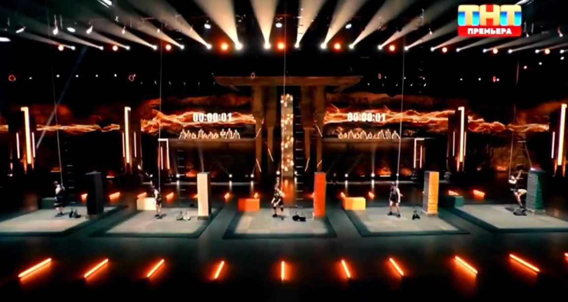 Мячи. За каждым атлетом одна половина арены и 25 мячей, перебросить как можно больше мячей за две минуты на сторону соперника. Кто больше перекинет, тот и победит.