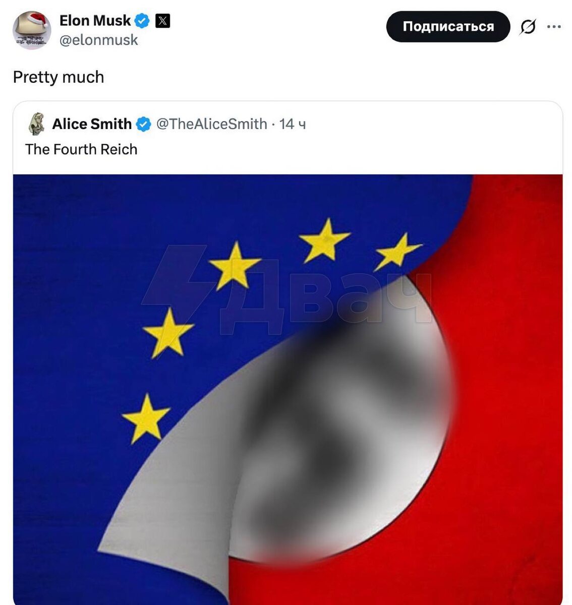 Евросоюз — в значительной степени «Четвёртый рейх», считает Илон Маск