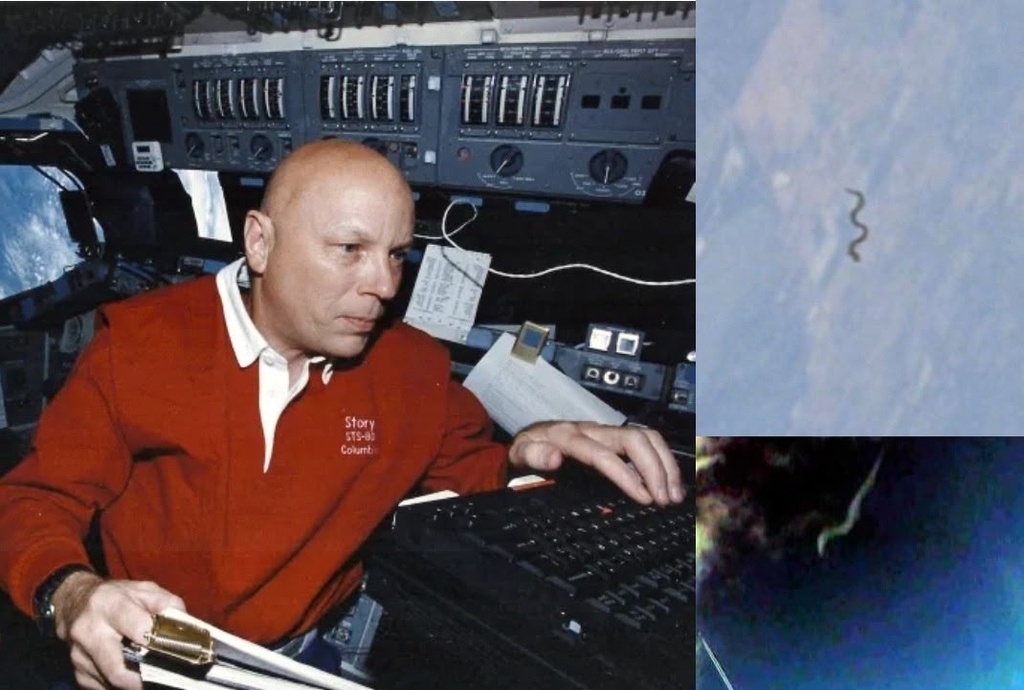 ### Змееподобные существа в космосе: свидетельства астронавта и очевидцев 🐍🚀 В 1995 году астронавт Франклин Масгрейв (шесть полётов на орбиту, 1282 часа в космосе) заявил: 9 апреля он видел в открытом космосе белую змею длиной 8 футов — и даже сделал фото. Что он рассказал после возвращения: * существо эластичное, двигается волнообразно; * следует за наблюдателем долгое время; * он видел подобных созданий и в других миссиях (длиной 6–8 футов). Масгрейв — не просто полковник морской пехоты. У него шесть учёных степеней (врач, математик), его многократно проверяли на психическое здоровье. Не он один видел нечто подобное. В марте 2019 года пассажиры рейса из Финикса в Портленд заметили за бортом два длинных тёмных объекта с «хвостами» или «щупальцами». Что это может быть? * неизвестные формы жизни, способные существовать в космосе и атмосфере; * примитивные организмы (соединения белков, аминокислот, одноклеточные); * объекты небиологической природы, похожие на живых существ. Наук