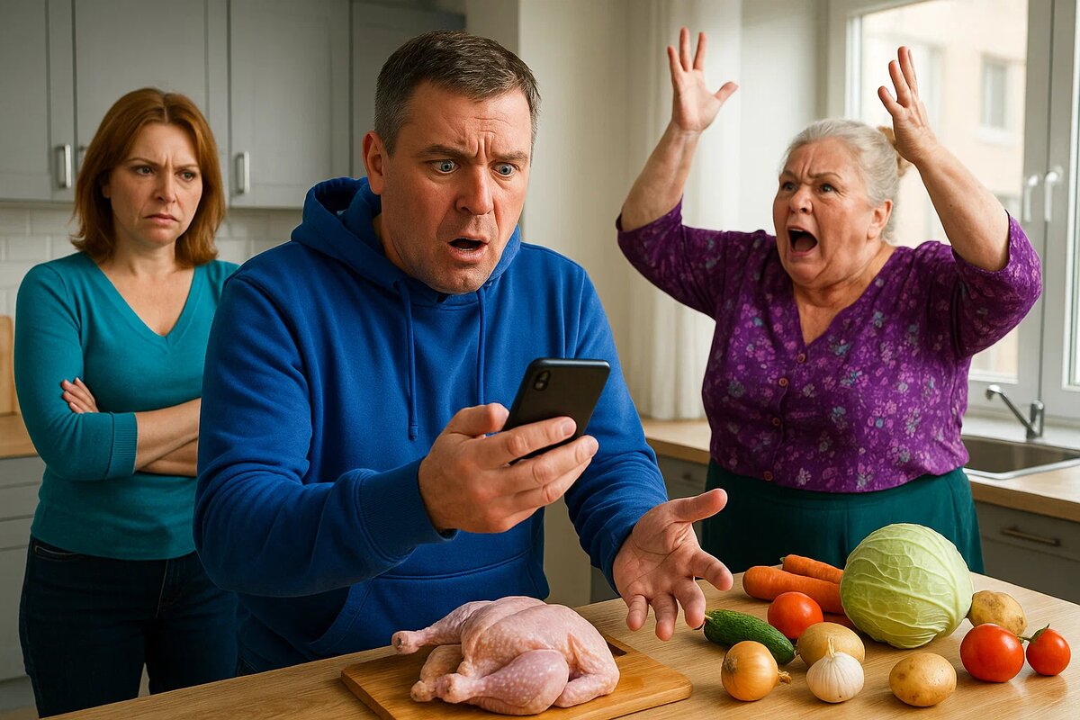 Вечером 31 декабря, в пять часов, Виктор метался по кухне с курицей в руках. Он не знал, с чего начать. В холодильнике — пусто. Марина специально ничего не закупила. Он позвонил матери.