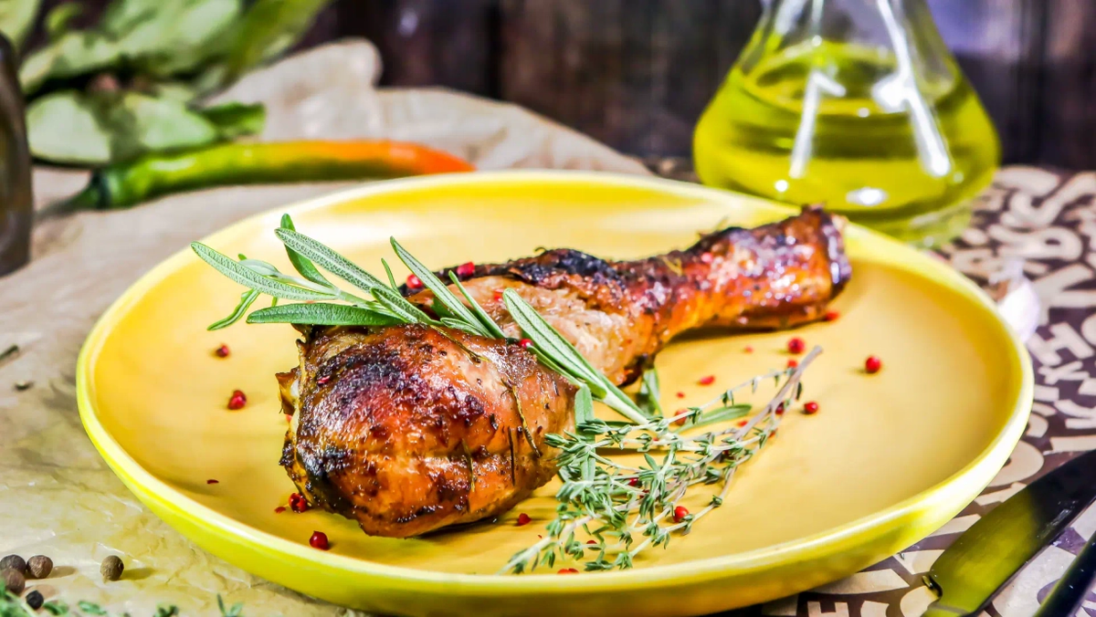 Индейка всё чаще появляется на домашнем столе как альтернатива традиционной курице или более тяжёлой свинине. Она считается диетической, легко усваивается организмом и прекрасно подходит для праздничных горячих блюд. Особенно эффектно смотрятся запечённые голени индейки — крупные, мясные, сочные, с выраженным натуральным вкусом. А тимьян, один из самых универсальных средиземноморских трав, добавляет им яркий аромат и лёгкую пряность, создавая впечатление сложного ресторанного блюда при минимуме усилий. Запечённые голени индейки с тимьяном — идеальный вариант для новогоднего стола: блюдо красиво подаётся, отлично сочетается с любыми гарнирами и всегда получается удачным. Ингредиенты Голени индейки — 2–3 шт. Тимьян свежий или сушёный — 1–2 ч. л. Чеснок — 3–4 зубчика Лук — 1 шт. Масло оливковое — 2–3 ст. л. Соль, перец — по вкусу Паприка — 1 ч. л. Лимонный сок — 1–2 ст. л. (по желанию) Пошаговое приготовление
