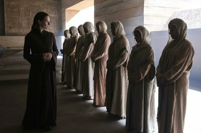 Сразу оговорюсь: я оцениваю «Дюну» как самостоятельное произведение. Фильм должен говорить сам за себя, не прячась за культовостью первоисточника. И, к сожалению, именно здесь у меня возникает больше всего вопросов. На уровне визуального языка — это событие. Другие миры, другой уклад, иная биология, странные ритуалы и архитектура — всё это в первые минуты захватывает и обещает погружение в сложную, многослойную вселенную. Некоторые сцены буквально хочется остановить и рассматривать как картины. Актёры отрабатывают каждый крупный план, музыка давит, жужжит, рычит, создавая ощущение грандиозности происходящего. Но чем дальше — тем сильнее ощущение пустоты между эффектными кадрами. Как будто нам демонстрируют фасад огромного дворца, но не приглашают переступить порог. Нас знакомят с могуществом дома Атрейдесов, однако не дают ни малейшего понимания, почему империя так боится именно этих людей. Они представлены честными, почти мягкими, действующими с достоинством, — но где аргументы, чт
