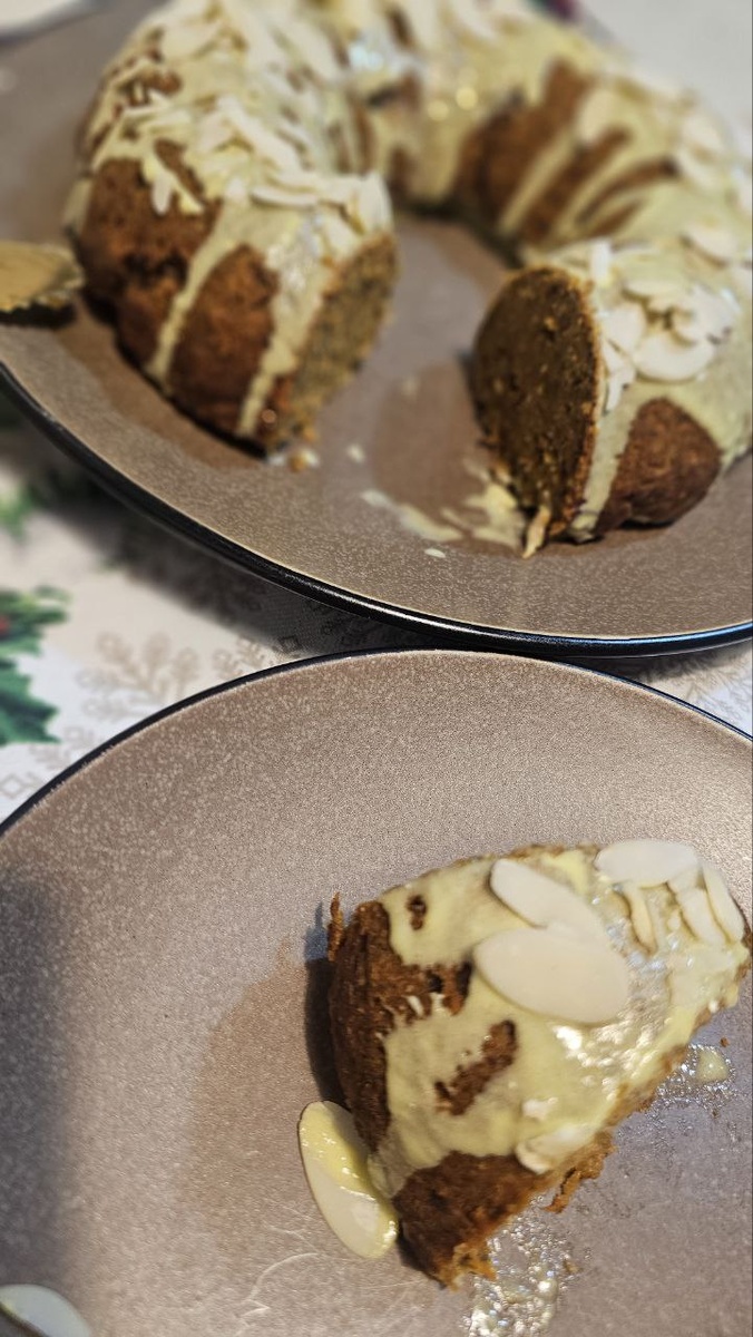 Ингредиенты: морковь - 200г грецкие орехи ( измельченные)- 100г яйцо - 3 шт сливочное масло ( растопленное) - 80г разрыхлитель - 10г мука - 200г сахар - 100г цедра 1/2 1 апельсина К натертой на мелкой терке моркови добавить все остальные ингредиенты, муку в конце . Все хорошо перемешать, выложить в форму. Готовить при температуре 180 градусов 30 минут,в заранее разогретой духовке. Я украсила готовой цитрусовой пропиткой - вкусно, но лучше свою сделать. Можно просто смазать сметана+ сах.пудра, пудра по вкусу.
