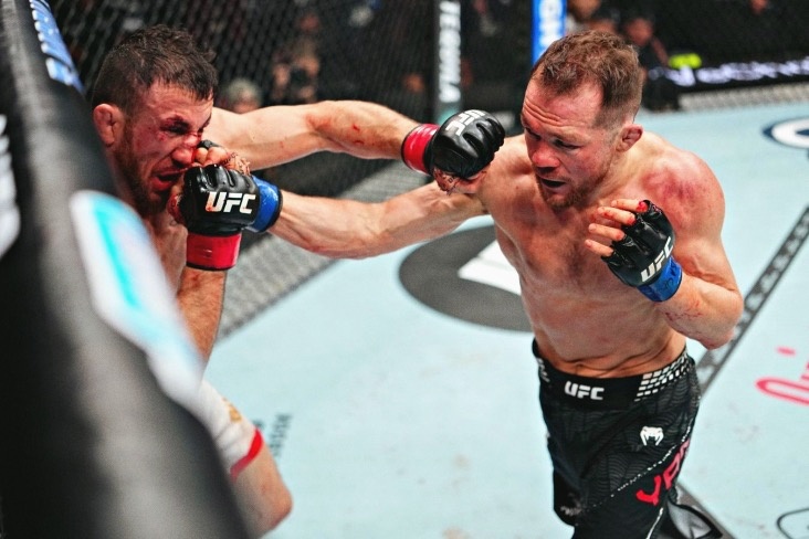 Петр словно читал мысли Мераба. Каждую попытку прохода в ноги россиянин встречал либо жёстким ударом в челюсть, либо коленом. Двалишвили реализовал всего 2 тейкдауна из 29 попыток, для борца такого уровня это очень и очень слабо.