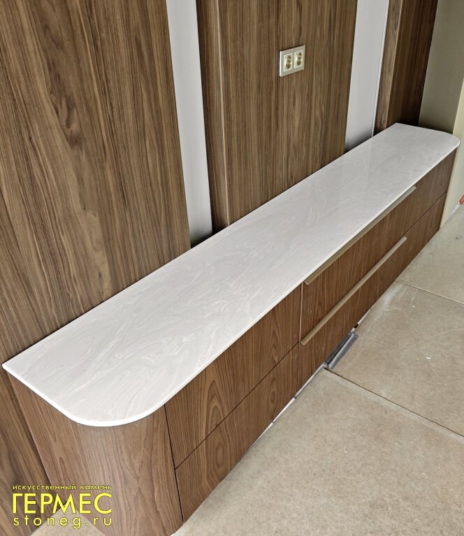 ✅ Наша работа. Столешница на тумбу из искусственного камня Grandex M-717 Shrimp Crust Marble Ocean бежевого цвета с мраморной текстурой. - Размеры столешницы: 2409х405 мм. - Толщина: 12 мм. - Подгиб: нет. - Борт: нет. - Кромка: радиусная. 👉🏻 Расчёт стоимости проектов и заказ изделий: ☎ 8 (812) 336-34-22, 👉🏻 stoneg.ru/rasschitat-stoimost-proyekta https://dzen.ru/id/5f5b6f7c3d4e5b604091de0c