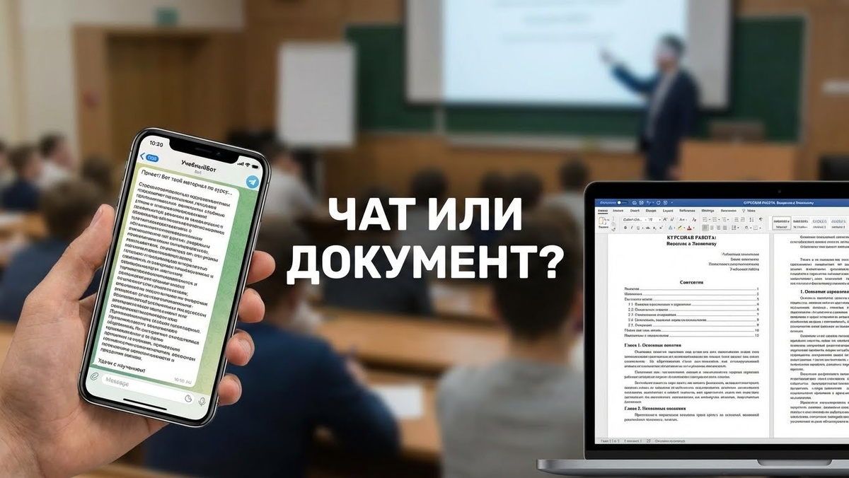 Но и среди новаторов есть проблема. Большинство по привычке использует популярные чат-боты в Телеграме или браузере. Казалось бы, удобно: написал тему, получил текст. Но когда дело доходит до сдачи работы, начинается суровая реальность. Преподаватель не принимает скриншот переписки с роботом. Ему нужен файл .docx, оформленный по ГОСТу.
